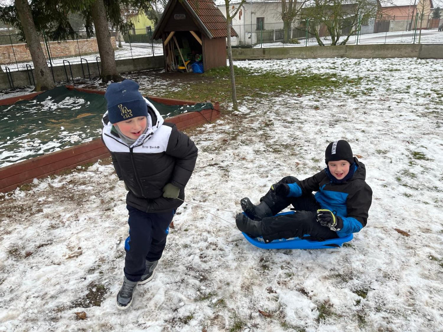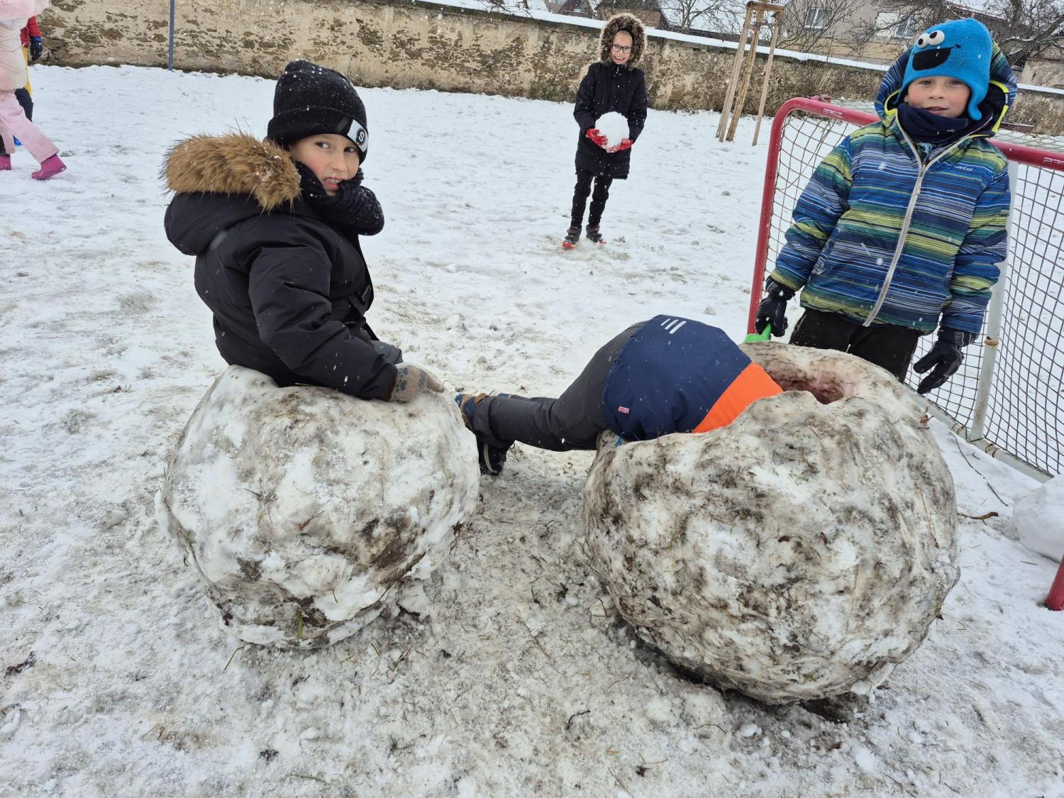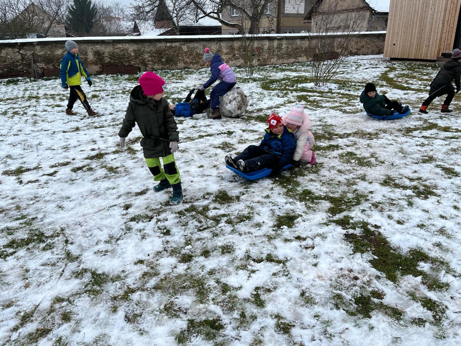 Z první sněhové nadílky se radovaly všechny děti. Jejich nadšení pro stavbu sněhuláků a různých jiných staveb nám vykouzlil úsměv na tváři. Nechybí i tradiční koulovačka, zmrzlé prstíky a tváře růžové od zimy.
